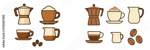 Coffee Elements in Flat Minimal Style for Cafe Menu Design Pack