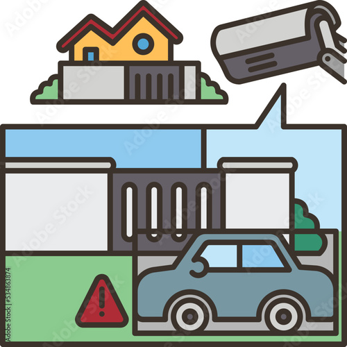 Video surveillance metal and alarm detectors turnstiles. Security icons set flat