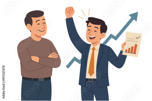 A vintage retro cartoon of a proud businessman boasting about his success. proud,man,boasting,pride,success,businessman,business,suit,tie,happy,people,male,character,cartoon,retro,vintage,illustration