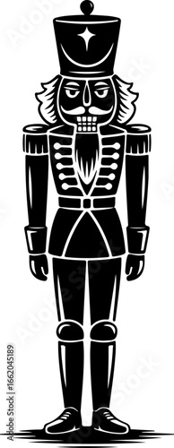 minimal black silhouette of a classic nutcracker soldier standing tall in a proud