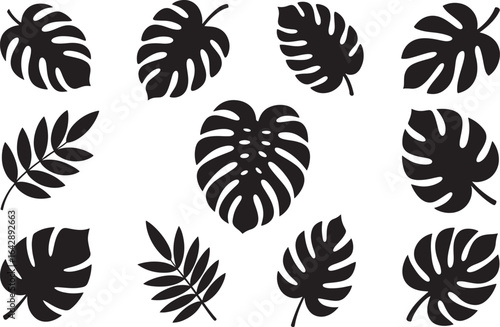 Exotic tropical leaf collection featuring palm, monstera, and fern silhouettes for botanical design projects
