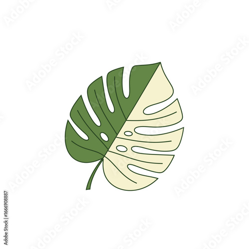 Tropical leaf illustration in soft green and purple tones. Aesthetic botanical background perfect for nature, summer, or jungle-themed designs.