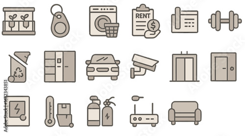 Workspace line editable icon set. Contains  icons related to Workspace and office, coworking. Equipment and furniture. Editable stroke. Vector illustration