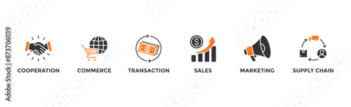 Business to business banner web icon vector illustration concept with icon of cooperation, commerce, transaction, sales, marketing, supply chain