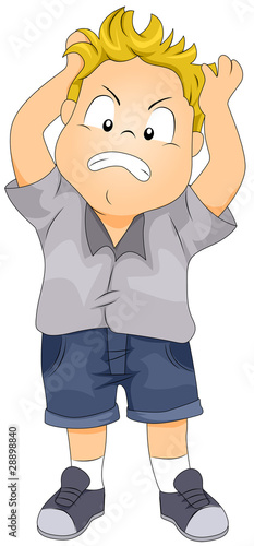 Vector illustration of a very angry boy standing in a pose, arms crossed, with a disgruntled look on his face. aggressive children