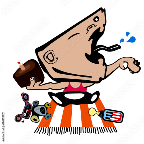 Cartoon style vector illustration of a frustrated caucasian male golfer screaming, spitting and bending his club out of anger.
