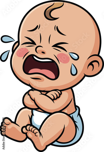 Unhappy Baby Crying Loud Vector Cartoon Illustration