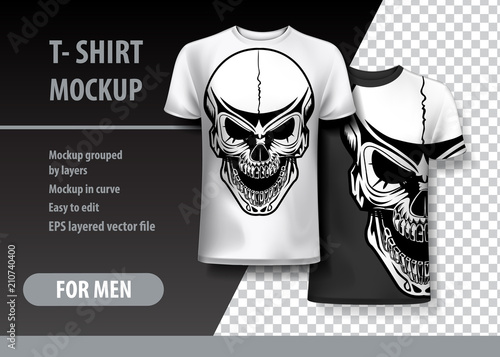 T-Shirt template, fully editable with Vintage Skull tatoo style. EPS 10 Vector Illustration.