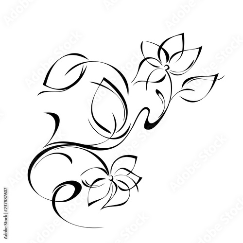 Set of luxury flowers and logo. Trendy botanical elements. Hand drawn line leaves branches and blooming. Wedding elegant wildflowers for invitation save the date card. Vector