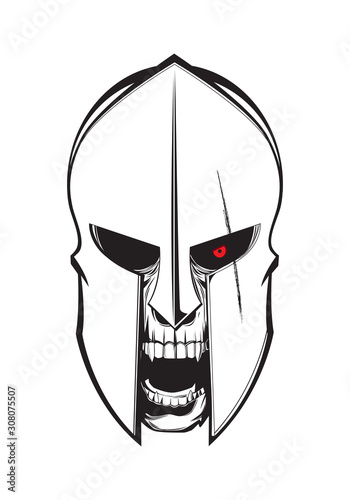 an angry Spartan Skull Head. Monochrome Vector Illustration