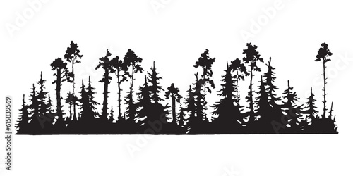 Hand drawn forest silhouette, Forest design, trees drawing, forest background, tatoo design, clipart