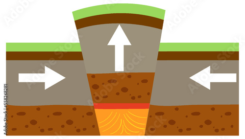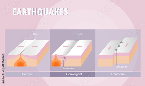 Plate boundaries vector illustration. Labeled tectonic movement comparison.