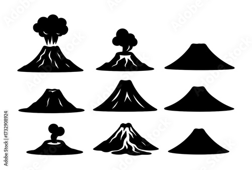 Volcanology. Outlined stroke vector icon with black-filled details.