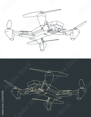 Drone Illustrations Collection - fully editable drone vector illustrations .ai & .eps + bitmap drone graphics in .png & .jpg  formats - editable drone graphics