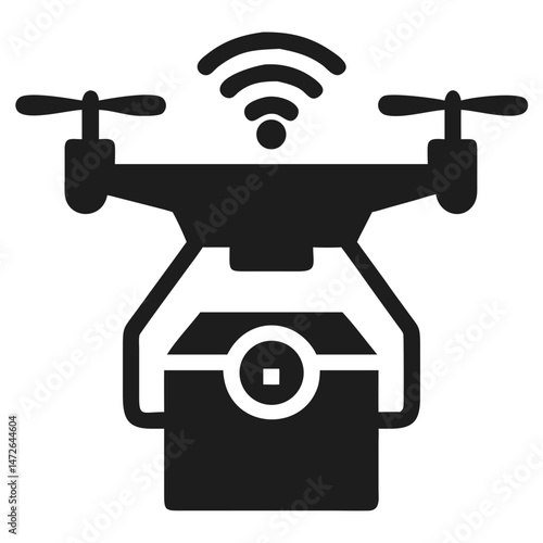 Futuristic smart delivery drone silhouette with ai sensors and wireless communication icon