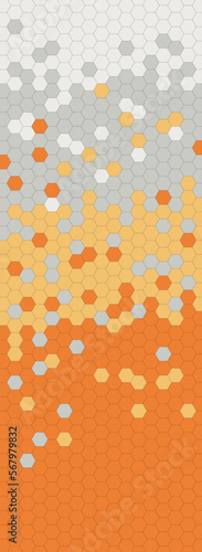 正六角形ヘキサゴンの幾何学的パターンで描かれた白グレーオレンジのグラデーションのバナー用ベクター画像
