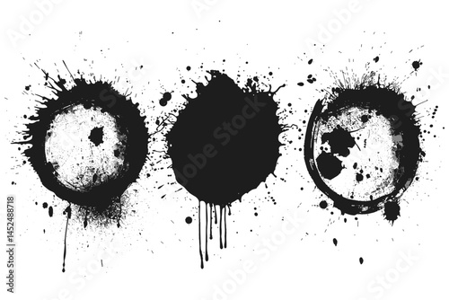 Abstract hand-drawn black and white vector isolated splatter brush stroke blood background set. Hand-painted grunge texture brush background