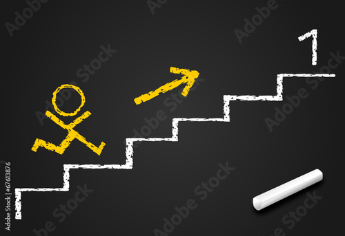 career development concept, confidence businessman take slow small stair steps to reach goal.flat vector illustration.
