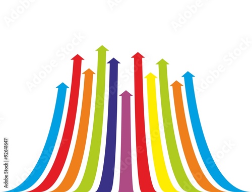 Flat illustration business people run up rising arrow symbolizing business and career growth