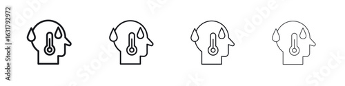 icons set showing symptoms of sickness, illness, and common health conditions like fever, cold, and fatigue..