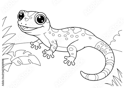 gecko cartoon outline line art vector illustration for coloring page for chidren's kids, transparent background