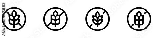Gluten free label vector icons set. No wheat symbols. Outline no gluten symbol. gluten free food package or dietetic product nutrition sign. Vector Illustration.