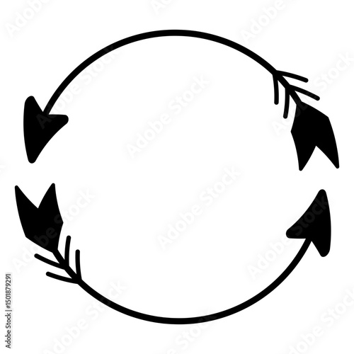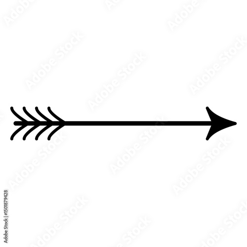 Stylized traditional arrow with fletching in a clean black and white line art illustration