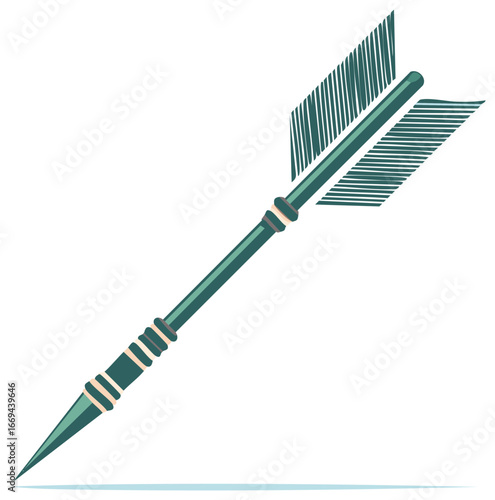 Detailed vector illustration of a decorative arrow featuring feathered fletching and sharp point