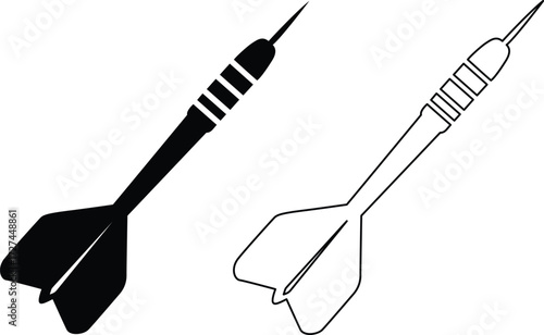 Black silhouette of a dart with fletching on a white background arrow projectile