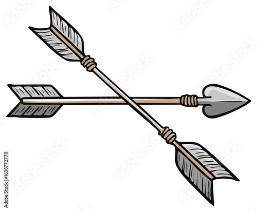 Hand drawn sketch of two crossed arrows with feather fletching