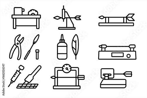 outline silhouette fletching icon set