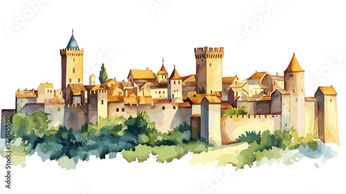 Beautiful summer european travel destination. Hand drawn style of south france or Italy coastline