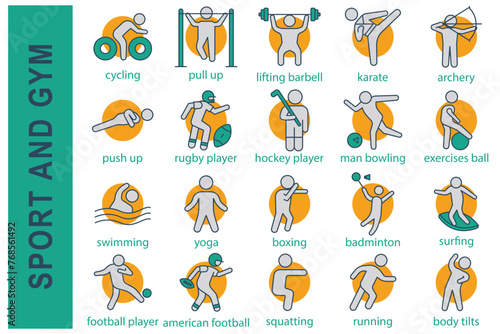 fitness icon.lineal color.modern style contains icons for running,exercising,skipping,jumping rope,push up bar,push up,health notes and many more.