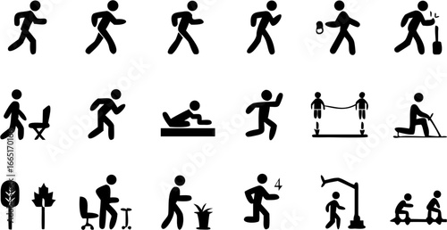 Dynamic set of silhouette fitness icons for active lifestyle design