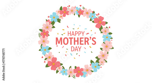 Happy Mother's Day greeting card illustrations with falling hearts on a soft pink background, celebrating motherhood and love