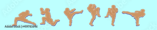 set of muaythai cartoon icon design template with various models. vector illustration isolated on blue background