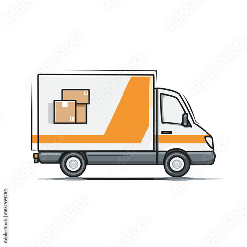 Illustration of a white delivery truck, showcasing vehicle design for transport and logistics, isolated on white background