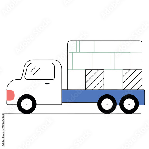 Stylized Truck Illustration Transporting Goods in Boxes a Whimsical Depiction of Delivery and Logistics for Children's Education and Fun