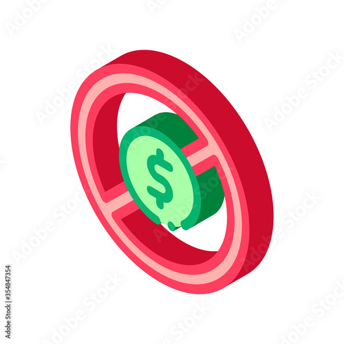 Dollar Banknote Ban Icon Vector. Isometric Dollar Banknote Ban sign. color isolated symbol illustration