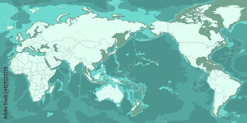 Blue and white Asia and Oceania centered world map vector illustration