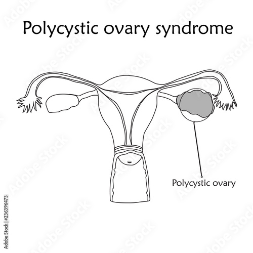 Diagrammatic illustration of polycystic ovary syndrome (maturation disorder), anatomy of the uterus and ovaries