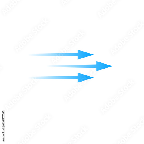 Collection of flowing arrows, wind airflow elements, cold air arrow,  and dynamic motion effects in a vector illustration