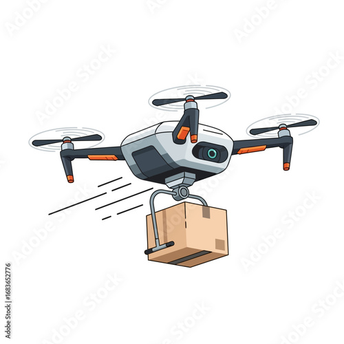 Futuristic drone delivery concept, automated package dropoff at secure terminal, modern logistics, innovation in shipping for e-commerce and business solutions