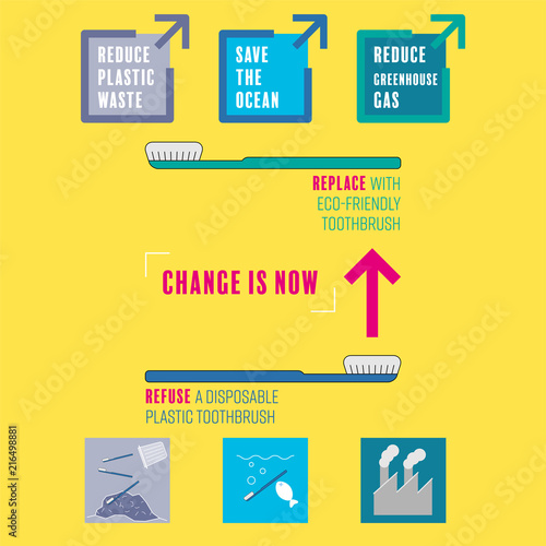 Why you should refuse a disposable plastic toothbrush infographic. Change is now concept. Vector illustration.