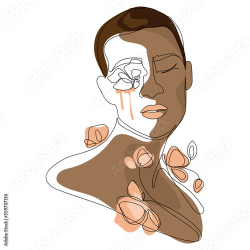 Line art woman. Self love and care concept. Continuous line drawing, fashion, beauty care minimalist vector, girl pretty face illustration. Perfect for t-shirt print.