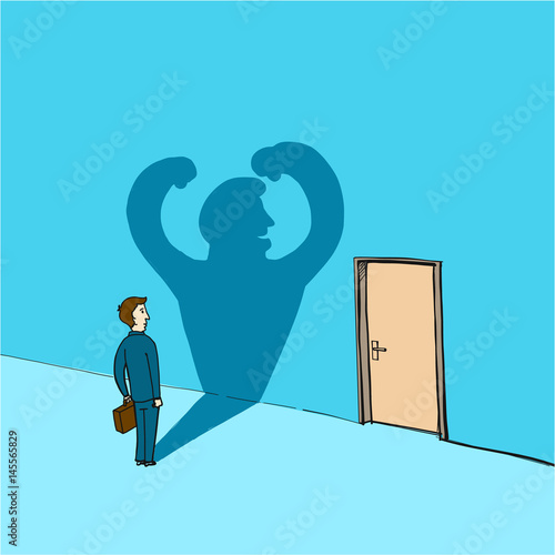 self confidence and courage  - conceptual vector illustration of man standing in front of the door