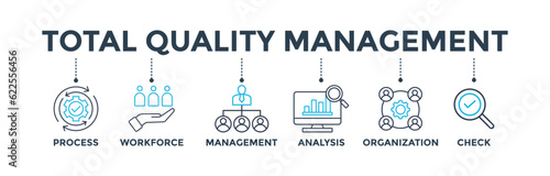 Total quality management banner web icon vector illustration concept with icon of process, workforce, management, analysis, organization and check