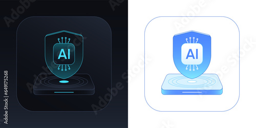 Guard shield with AI icon. Secure artificial intelligence for digital data, guard system technology. AI platform for data rights protection, network cyber security. Futuristic vector illustration set