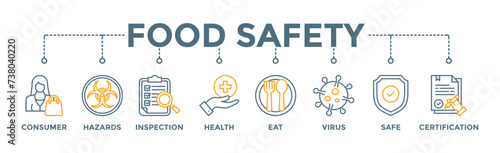 Food safety banner web icon vector illustration concept with icon of consumer, hazards, inspection, health, eat, virus, safe and certification
