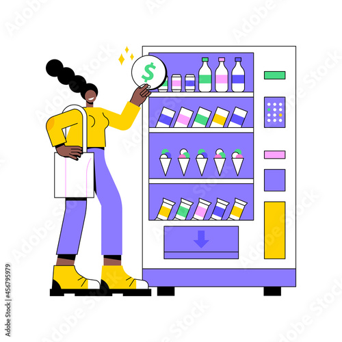Consumer inserts dollar coin into vending machine and buys snacks and drink. Vending machine service, vending business, self-service machine concept. Mobile UI UX GUI template, app interface wireframe